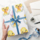 This adorable Waddle McQuackers baby shower wrapping paper is the perfect way to dress up a gift to celebrate the arrival of a new baby. Waddle is a happy little duck who loves to swim in the pond and is very excited to help you celebrate the arrival of your special baby boy. This gift wrap features a cute water coloured duck surrounded by a wreath of greenery. The background is bright white.