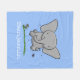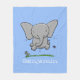 This design features a cute flying baby elephant on a blue background in adorable cartoon illustration style. Bring some adorable elephant fun into the nursery!