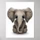 Cute Baby Elephant Calf Sitting Down, White Poster