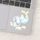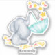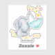 Personalised vinyl sticker with a cute baby elephant catching falling stars. This adorable watercolor illustration has a baby elephant balancing an umbrella on his trunk and catching stars and love hearts. The template is set up ready for you to personalise with your name (or you can leave the box blank if custom text is not required). The design has a gender neutral colour palette of yellow, grey and aqua green. These removable, waterproof vinyl stickers are great for your nursery decor and decorating toys, water bottles and journals etc.