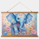 Cute Baby Elephant In a Pastel Daisy Garden Hanging Tapestry