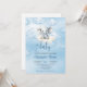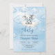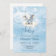 Gently design for boy Baby Shower invitations features cute baby elephant on swing in the blue sky with clouds. Modern Script typography says "Oh Baby".