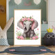 Cute Baby Elephant Pink Flowers Nursery Poster