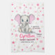 Cute Baby Elephant with Pink Ears Girl Birth Stats Tea Towel