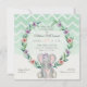 Cute Baby Elephant Wreath Floral Chevron Pattern Invitation