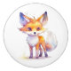 A very cute round ceramic pull with an illustration of a smiling baby fox.