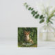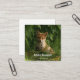 Business cards with a photograph featuring a cute little baby fox with red and white fur. Surrounded by lush green leaves and grasses.