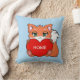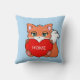 Cute baby fox with heart & personalised Home on light blue Pillow.