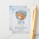 A little one is coming this winter. Cosy winter watercolor design featuring modern handwritten style script, orange cute sleeping baby fox on snowly background. The text can easily be personalised for a unique one of a kind design for your special day.