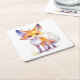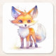 A very cute square paper coast with an illustration of a smiling baby fox.