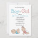 Having a Boy or a girl! Organising a baby gender reveal and looking for a contemporary gender reveal invitation, then these very cute invitations will be the perfect addition to your planning. Featuring an illustration of a baby boy in a pale blue Tshirt, a baby girl in a pink Tshirt and a stylish invitation template which is easily edited.
