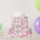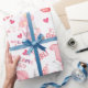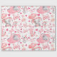 Celebrate a precious arrival with this adorable baby girl wrapping paper, featuring charming pastel pink elephants, hearts, balloons, and sweet “It’s a Girl” messages throughout the design.