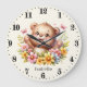 Cute baby girl bear add name large clock