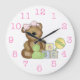 Cute Baby Girl Bear in Pink Bow+Rattle/Duck Large Clock