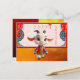 Cute baby Goat wearing Chinese cloths in cartoon style. Design on horizontal postcard with decorated Chinese pattern and texts to customize in back of the card. Matching greeting card. Perfect for a cute Chinese New Year of the Goat 2027 to kids.