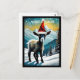 This holiday card features a cute baby goat in a Santa hat on a snowy mountain background. This baby goat Christmas card will be a favourite among goat lovers and animal lovers.