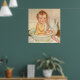 Decorate your wall with a charming vintage poster, featuring a cute baby having a bath in a bowl.