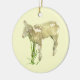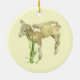 Here is an adorable ornament featuring a sweet little lamb just three weeks old. He is munching on grass on a yellow background.