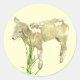 These stickers present a sweet little lamb just three weeks old eating grass against a yellow background.