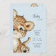 Cute Watercolor Baby Leopard. Simple. Baby Shower invitation. Modern. Back with more details. Blue.
