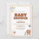 nvite loved ones to a cosy and charming baby shower with this adorable animal-themed invitation. Featuring a cute baby lion, fluffy lamb, and pastel mobile with stars and moons, this neutral-toned card is perfect for any baby celebration—boy or girl!