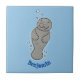 Cute baby manatee with bubbles illustration ceramic tile