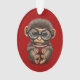 Cute Baby Monkey Reading a Book on Red Ornament
