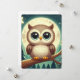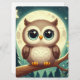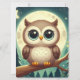 Cute baby owl at night with moon holiday card