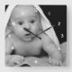 Cute black and white baby photo it your way square wall clock. Keep this photo or replace it with one or more of your own. This design with the white clock numbers in a circle is made this way to easily change the style from the square clock to the round wall clock. Resize, rotate, tile or no tile your own photo or make it a collage with as many photos as you would like. Keep out any important part of your photo(s) from the bleeding areas around the edges. Choose your best photos that are between 200 min. and better at 300 DPI, plus large enough 4 x 4, 4 x 6 would be a min. The bigger the better and clear quality photos…if it looks blurry, then it is blurry.