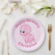 Cute Baby Pink Triceratops Dinosaur Paper Plate