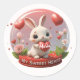 Cute white baby Rabbit holding a red valentine heart love personalised custom Classic Round Sticker, the rabbit is inside a glass globe with "My Sweet Heart Maria" you can change the name. Express your Love with this valentine rabbit anime Classic Round Sticker, full of elegance and Love.