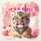 Cute Baby Reveal Girl Pink Baby Tiger Paper Coaster