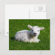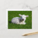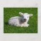 Cute baby sheep lying in grass postcard