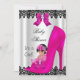 Cute Baby Shower Girl Hot Pink Shoe Black Lace Invitation