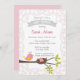 Baby shower invitation with bird design and floral background.