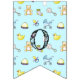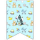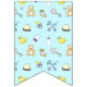 Cute pattern with baby items on the blue background: teddy, rubber ducky, pacifier, baby bottle, stroller... For a baby boy. Welcome baby!