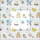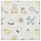 Cute pattern with baby items: teddy, rubber ducky, pacifier, baby bottle, stroller...