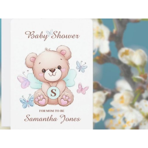 Consider this cute baby shower favour box as part of your baby shower festivities. Features the special event name along with the name of the mum-to-be as well as her monogram. Bear & Butterflies design. Use the template to personalise.