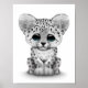 Cute Baby Snow Leopard Cub on White Poster