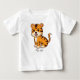 The baby t-shirt features a cute cartoon baby tiger with big, sparkling eyes and a friendly smile. The tiger is wearing a crown and surrounded by colourful flowers. The design is whimsical and playful, with a touch of royalty.