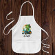 This personalised adorable and whimsical kids' apron design features a charming little dinosaur joyfully driving a miniature blue tractor. With its playful expression and soft dreamy colours, this delightful creation adds a touch of enchantment to any space, appealing to every kid.
