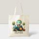 This personalised adorable and whimsical tote bag features a charming little dinosaur joyfully driving a cute blue tractor. With its playful expression, this delightful creation adds a touch of enchantment to any space, appealing to everyone.