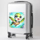 The stick looks amazing. Unfortunately, it would not stick on our suitcase as it was textured. When we found a non-textured (smooth) suitcase, the sticker stuck and looks great. The printing looked awesome.
