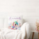 This magical and enchanting throw pillow features a cute baby unicorn with rainbow hair and big eyes. The sweet little unicorn is sitting on a blue and pink glitter cloud, and several pink foil hearts are floating beside her. A sample name is printed at the top which you can personalise to include your own custom name or text.