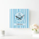 Cute Baby Whale Blue Stripes Square Wall Clock