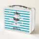 Cute Baby Zebra on Clouds Stars Moon Blue Stripes Metal Lunch Box