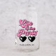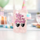 Cute can glass for the bride's bachelorette party guests featuring "Life of the Party'" in a pink retro script and fun heart-shaped pink sunglasses. Personalise with the party location or the name of the guest in simple typography. A set of 4 can glasses that includes a "Wife of the Party" glass for the bride is available (message us for the link).