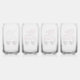 Fun set of can glasses for the bride and her bachelorette party guests. The glass for the bride features "Wife of the Party" in a white retro 70's style script and cute heart-shaped pink sunglasses; the glasses for her guests feature "Life of the Party" in a pink script. On each glass, you can add the party location or the name of the bride and her guests in simple modern typography. Single can glasses are available for additional guests (message us for the link).