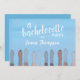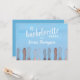 This design features a watercolor blue simple spa weekend, a cute whimsical pedicure pool beach, with a QR code website online URL, a girl's weekend chic feminine girly, a bachelorette party weekend invitations, a stylish trendy calligraphy script, a modern minimalist typography style, a resort beach spa hotel weekend, a bachelorette weekend party invites, a bride bridesmaid weekend party
