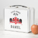 This lunchbox is super sweet and a lovely choice for the little racing car lover in your life. The text which appears on the front and back can be edited to suit so you can keep the 'FIRST GRADE' as-is or edit it and then you can include your little one's name or any other choice of text. The design features a red racing car with a chequered flag and the background is a crisp white.